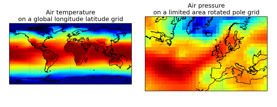 >>> rotated_psl = iris.load_cube(iris.sample_data_path('rotated_pole.nc'))